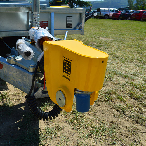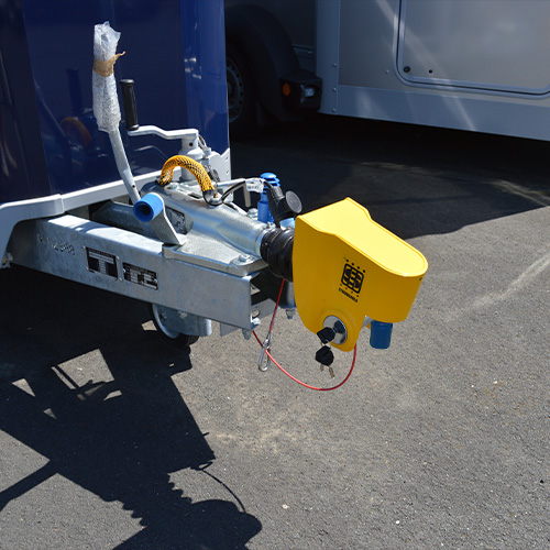 - The robust yellow steel casing with anti-saw features covers the fixing bolts of the hitch to protect it from being stolen