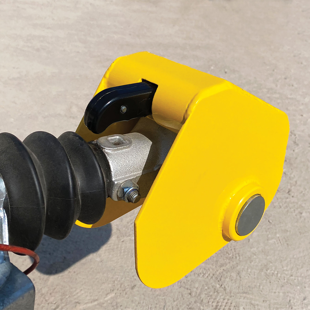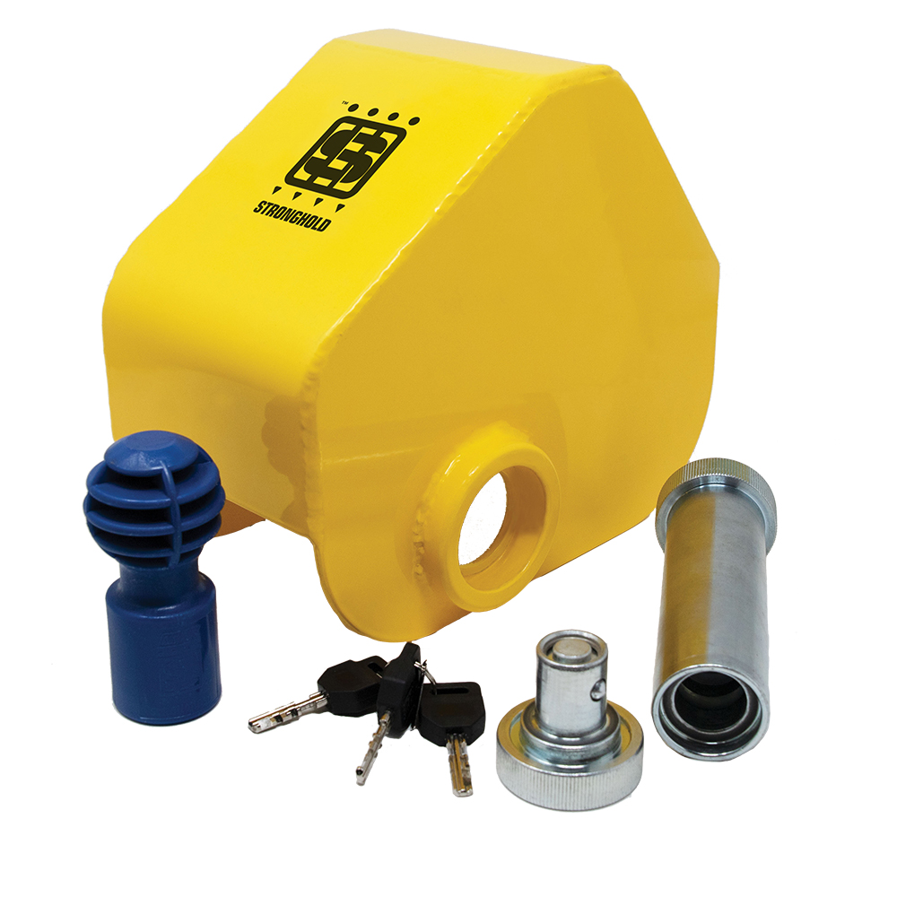 - The robust yellow steel casing with anti-saw features covers the fixing bolts of the hitch and immobilises the handle to prevent theft