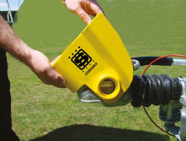 - The robust yellow steel casing with anti-saw features covers the fixing bolts of the hitch to protect it from being stolen